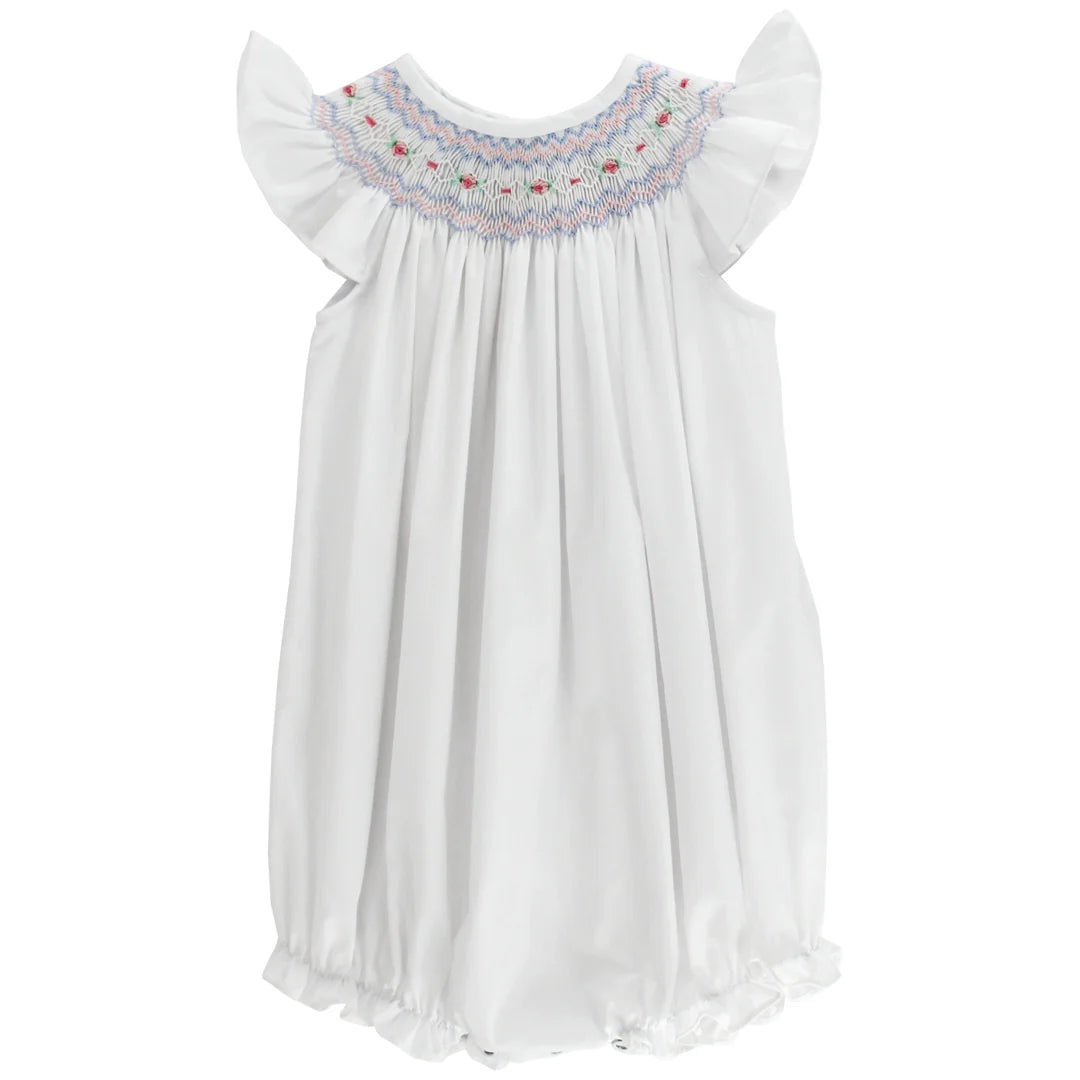 Bailey Boys Bishop Romper White with Rosebuds - 3M is backordered and will ship as soon as it is back in stock.