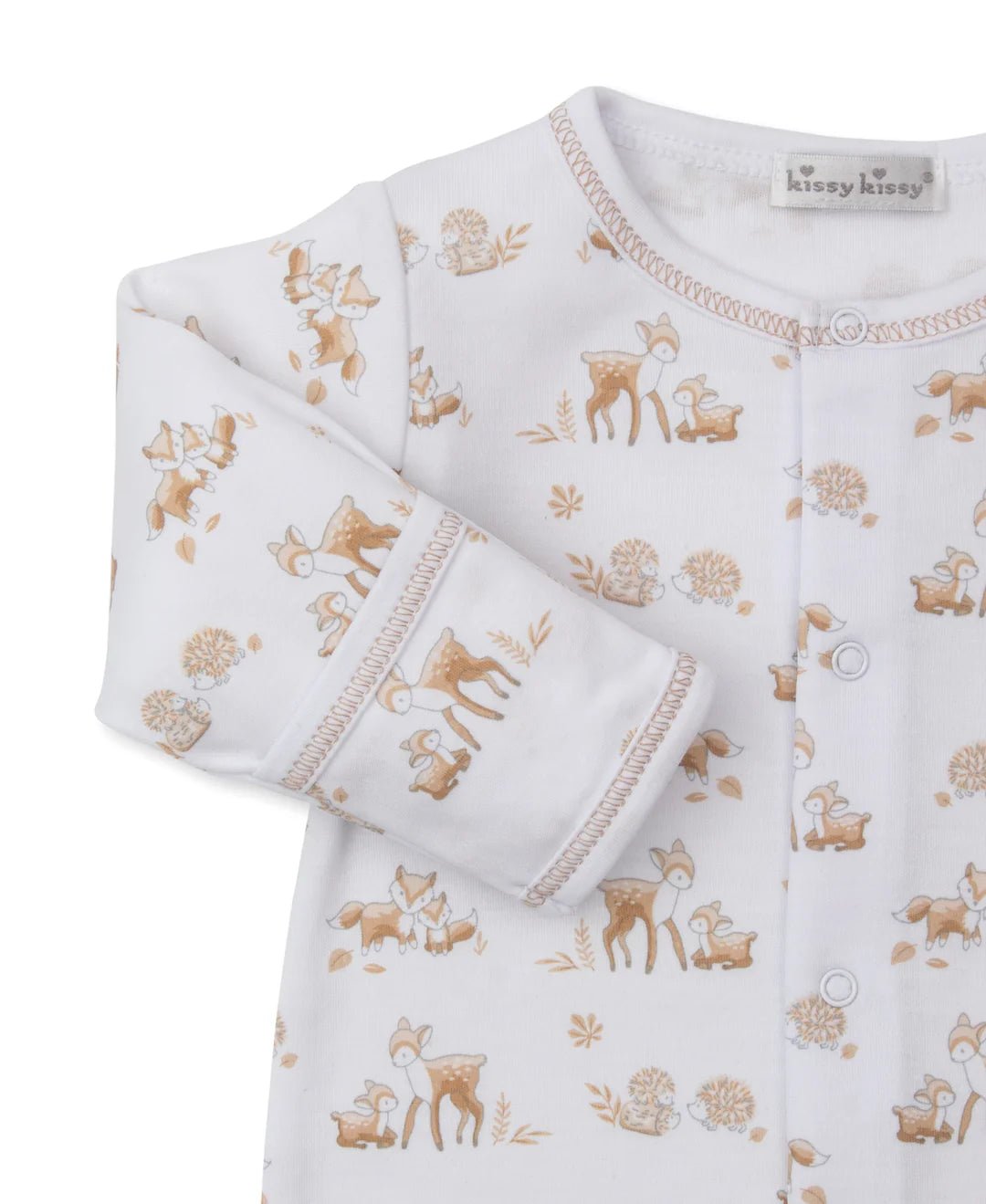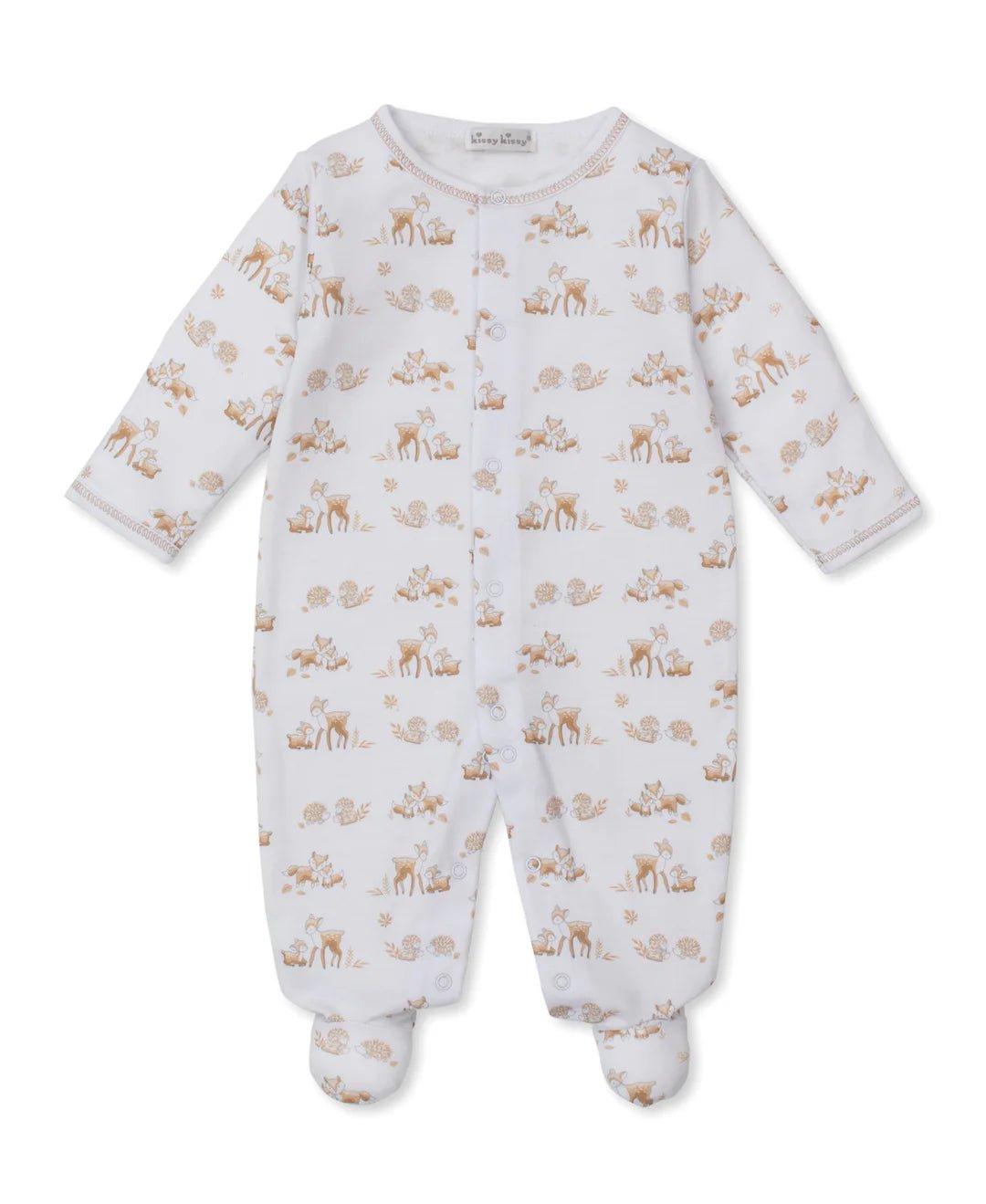 Kissy Kissy Footie Forest Fanfare Tan - 0-3M is backordered and will ship as soon as it is back in stock.