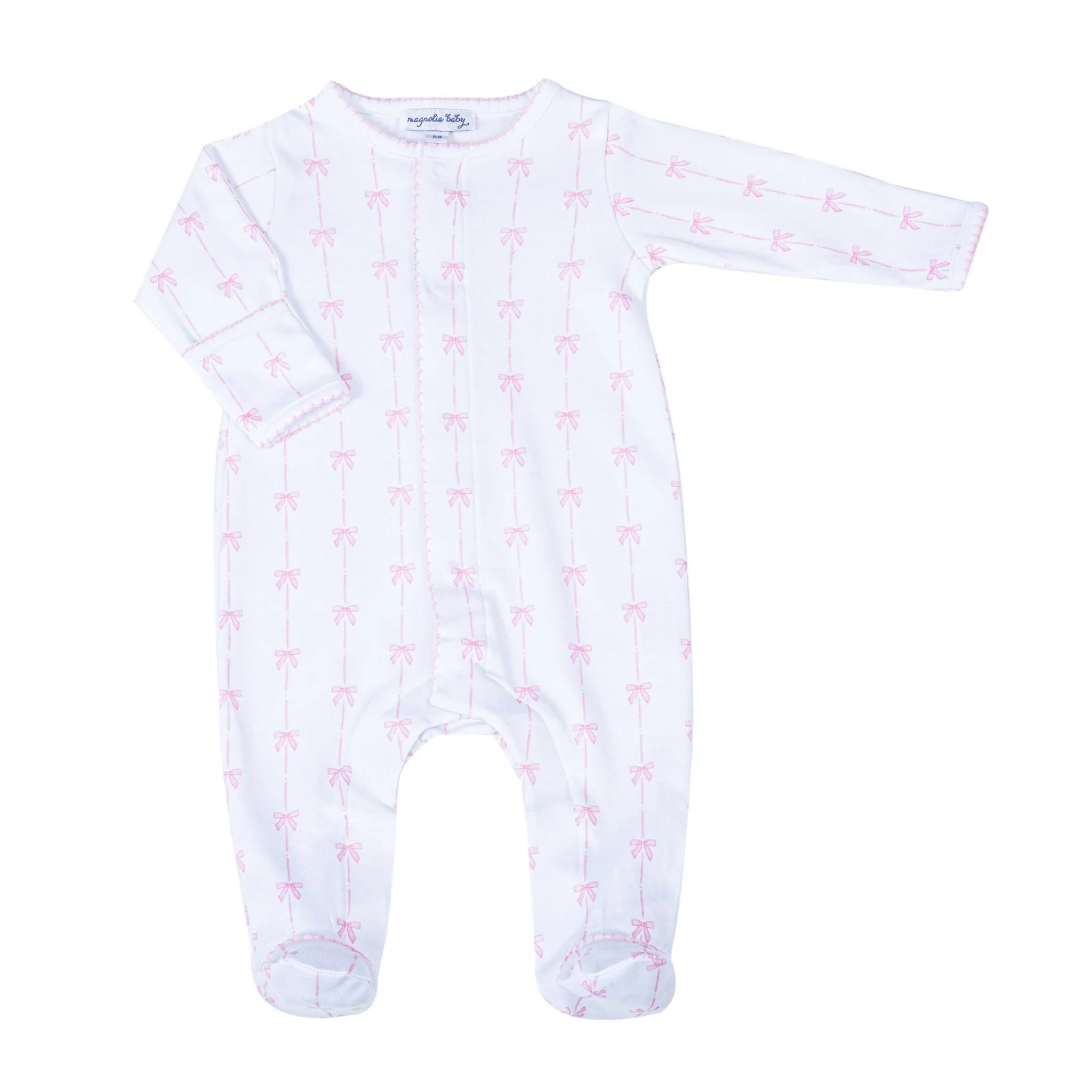 The Amelia's Classic Footie by Magnolia Baby is a sweet addition to your baby girl's wardrobe. Made from the softest Pima Cotton and adorned with sweet pink bows, this footie will be a favorite.