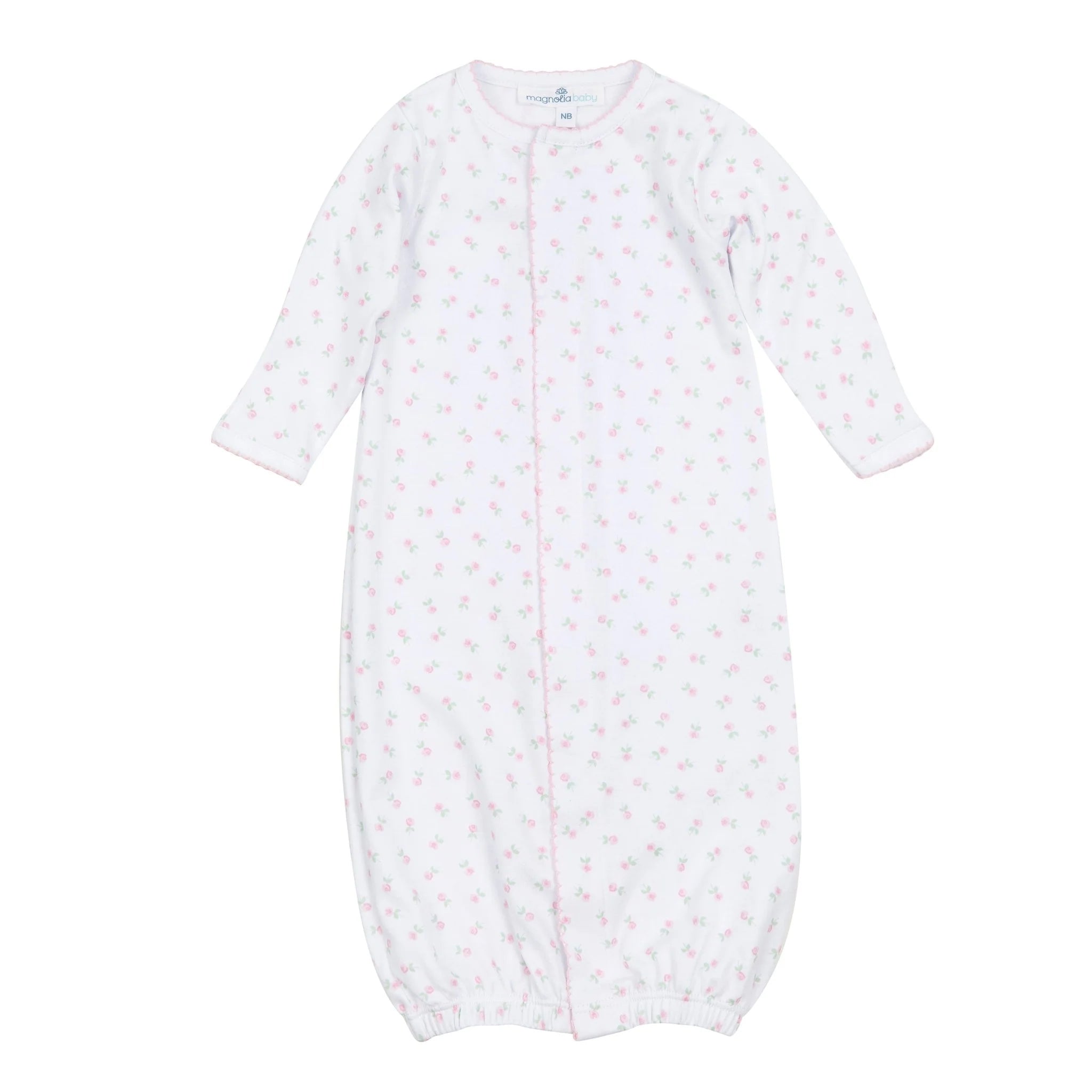 The Juliette’s Classics Printed Converter Gown by Magnolia Baby combines comfort and style for your newborn. Made from premium 100% Pima cotton, it features a gentle floral print and gathered detailing for a cozy fit.