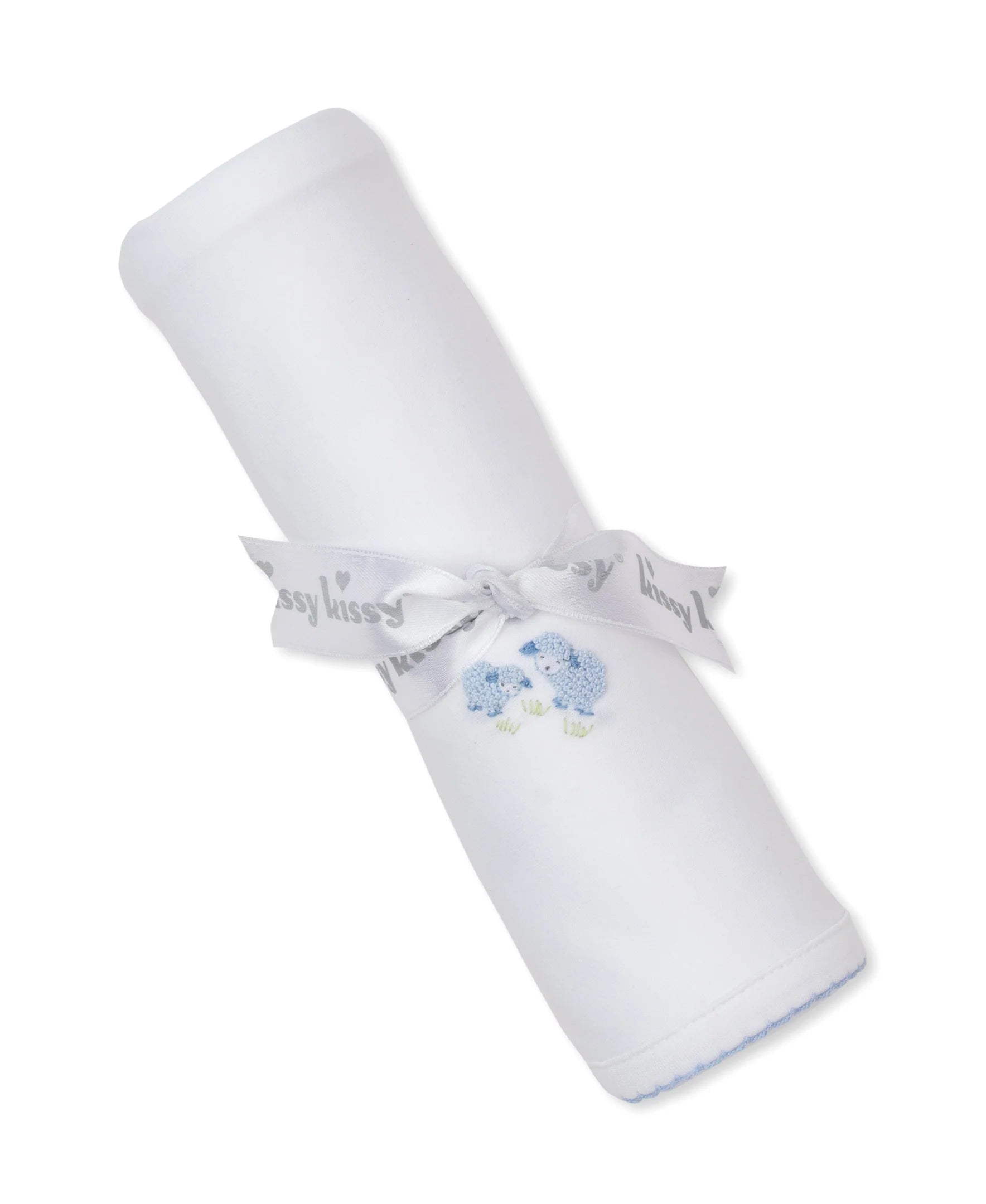 Kissy Kissy Blanket with Hand Embroidery Premier Sweet Sheep White Light Blue is backordered and will ship as soon as it is back in stock.