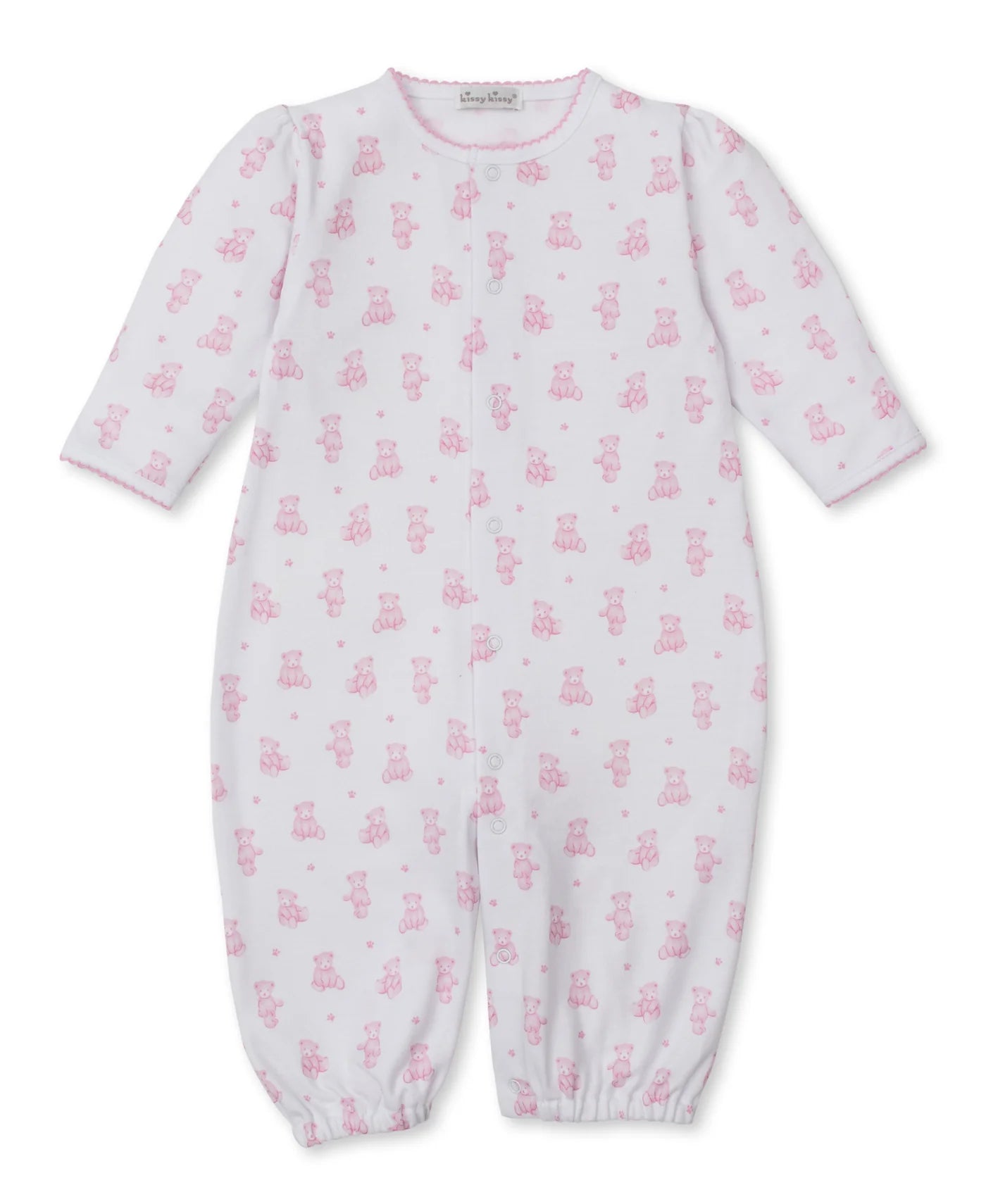 Patterned with the fun Pink Teddy Bear Time print, the cozy converter gown by Kissy Kissy is made from the softest Pima cotton for complete comfort for baby. With snaps that convert gown to playsuit, this multi-functional piece can easily go from naptime to playtime.