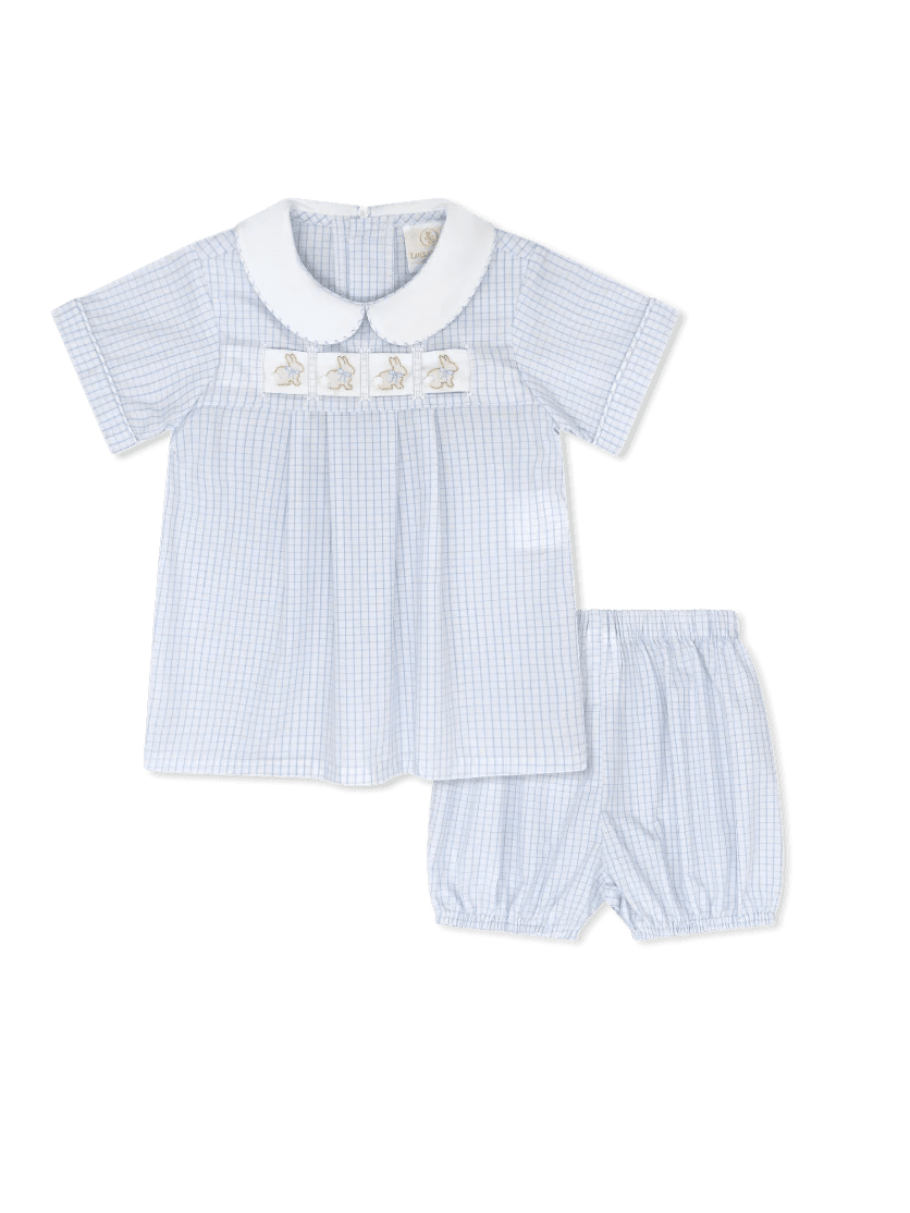 Lullaby Set Noah Ribbon Bloomer Set - 4T is backordered and will ship as soon as it is back in stock.
