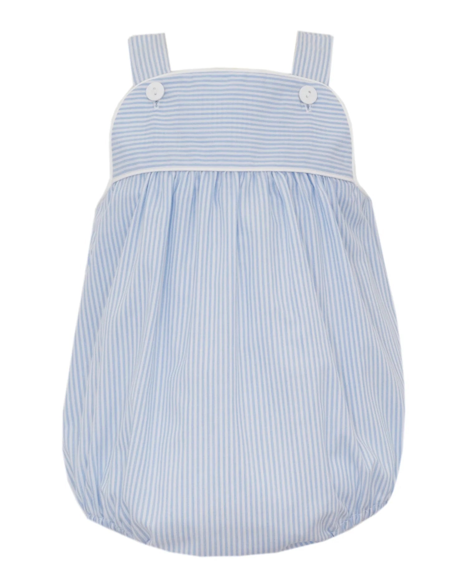 Petit Bebe Light Blue Stripe Boys Strap Bubble - 9M is backordered and will ship as soon as it is back in stock.