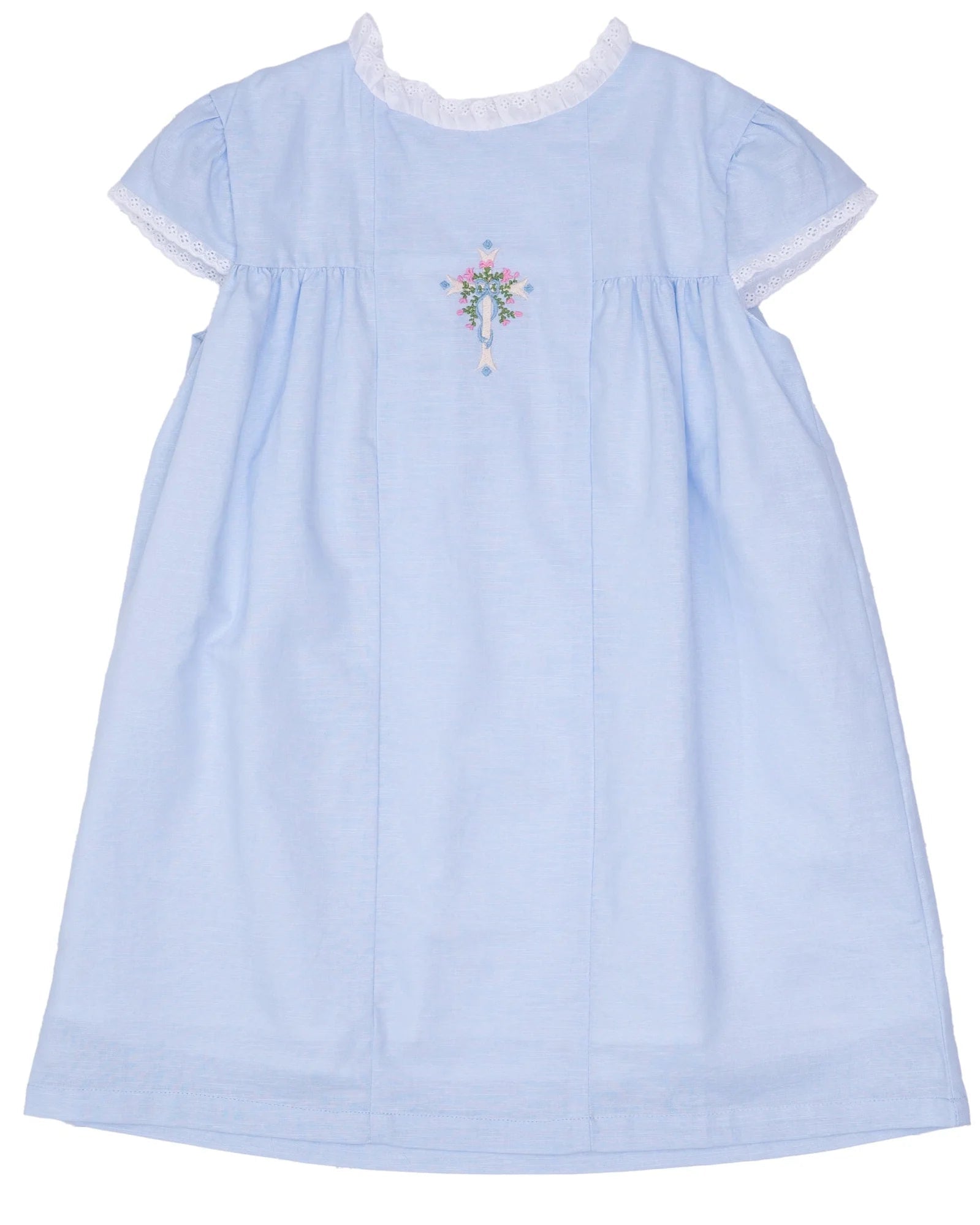 Celebrate the season in timeless elegance with the Anika Spring Cross Dress by the Oaks Apparel. This darling light blue design features classic cross embroidery that captures refined, understated luxury—perfect for Easter gatherings and spring occasions.
