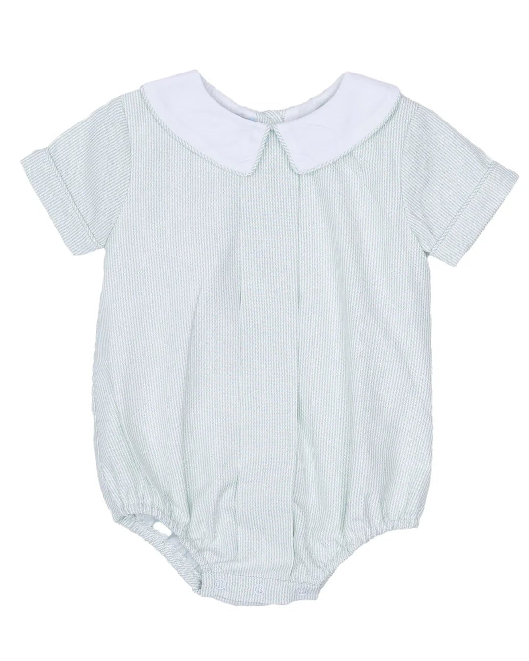 Effortless charm meets seasonal style with the Brandon Willow Green Stripe Bubble by The Oaks Apparel. This sweet pleated bubble captures that perfect spring-to-summer transition in a timeless green and white stripe.