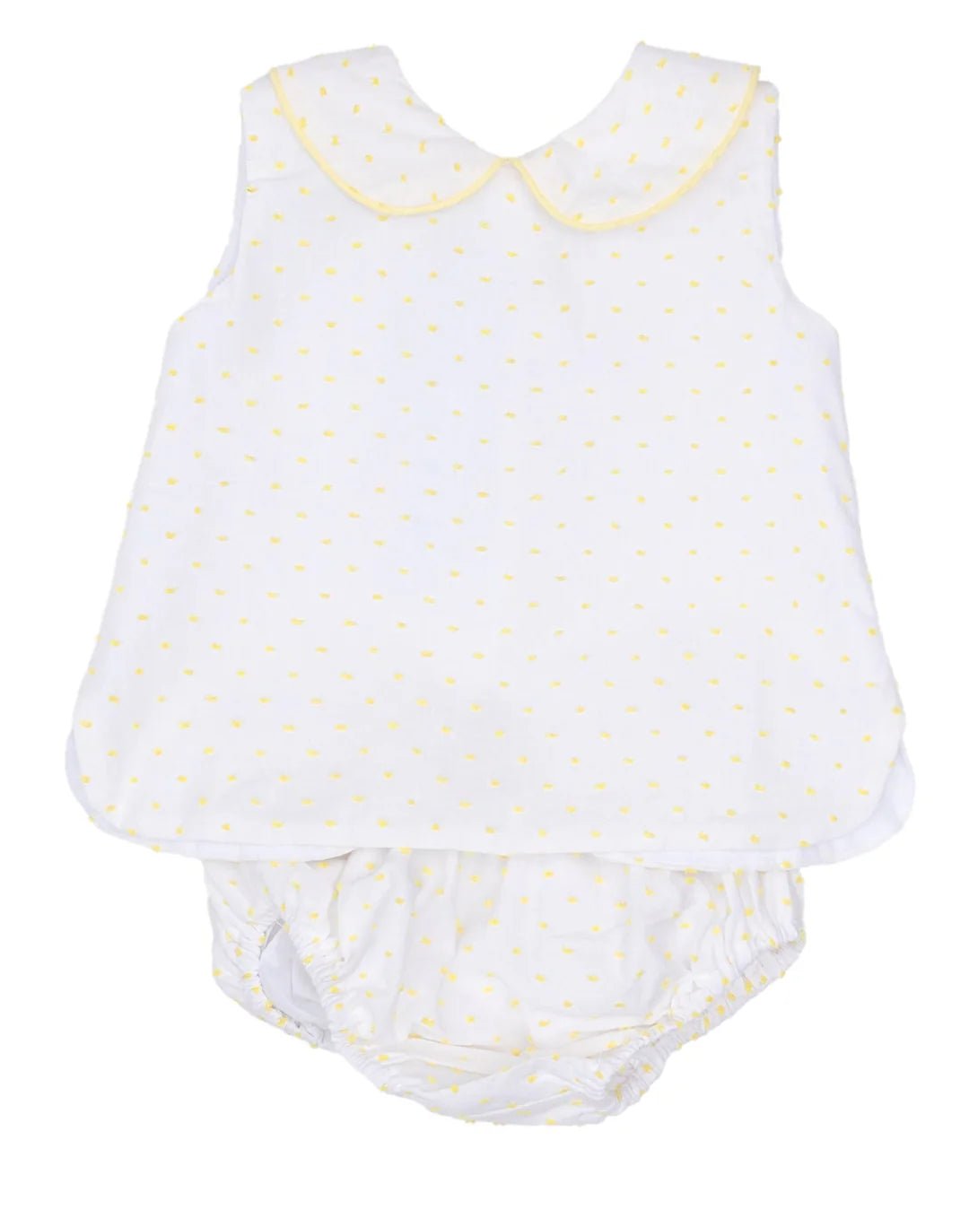 The Raleigh Yellow Swiss Dot Diaper Set by The Oaks is a playful layette essential that brings cheerful charm to every change. Crafted in soft, breathable fabric with a timeless polka dot pattern, this set layers beautifully with other nursery pieces for a coordinated look.